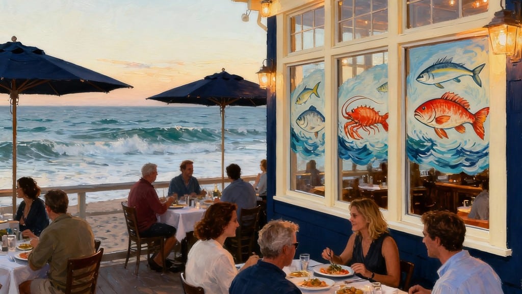 Request a window table on the second floor for the best panoramic ocean views without crowds. The chef’s daily fresh catch is always a safer bet than frozen menu items. Sunset reservations (6-7pm) book fast, but 5pm early seating still catches golden hour light.